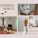 Joli Appart Le Moderne Design Appartement biedt een zitruimte die zijn ingericht met een bank, samen met moderne voorzieningen zoals een flatscreen TV met satellietzenders. Deze accommodatie heeft ook parket vloerbedekking. Het appartement is uitgerust met een badkamer met een droger en handdoeken. Daarnaast vindt u er een apart toilet en een douche.